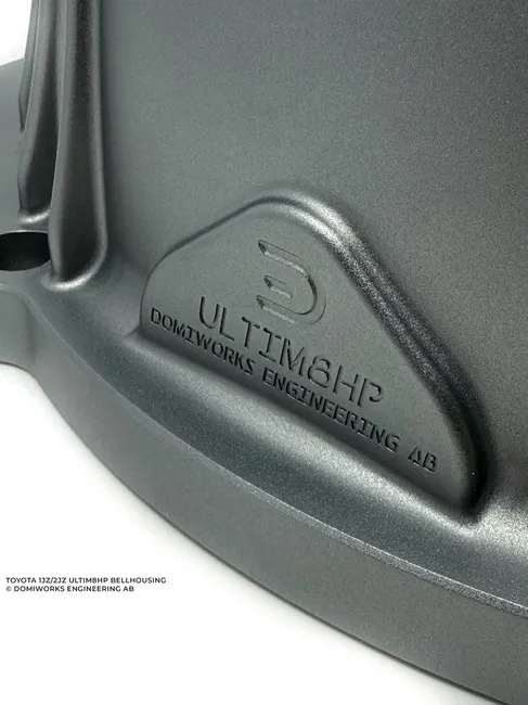 The Ultim8HP bellhousing comes in a sandblasted finished and anodized gray to match the apperance and surface of the casted casing.
